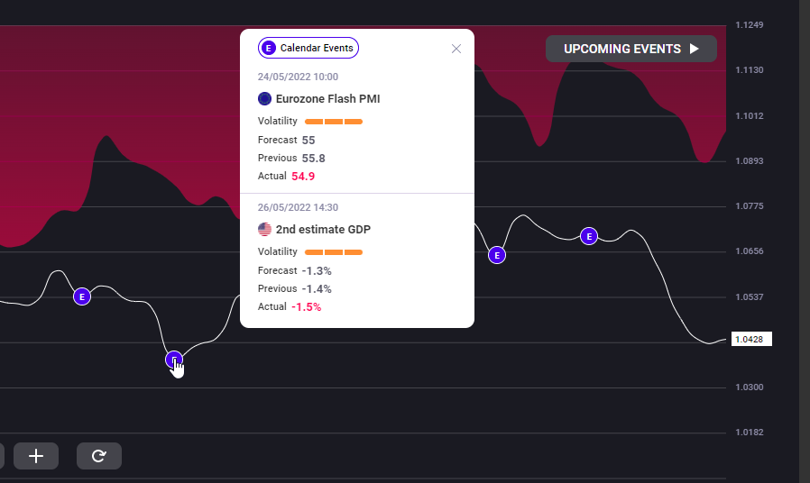 Event Plotting: * Calendar Events: Automatically plots past Earnings (stocks) or High Volatility events (macro) on the chart to visualize historical price reactions.